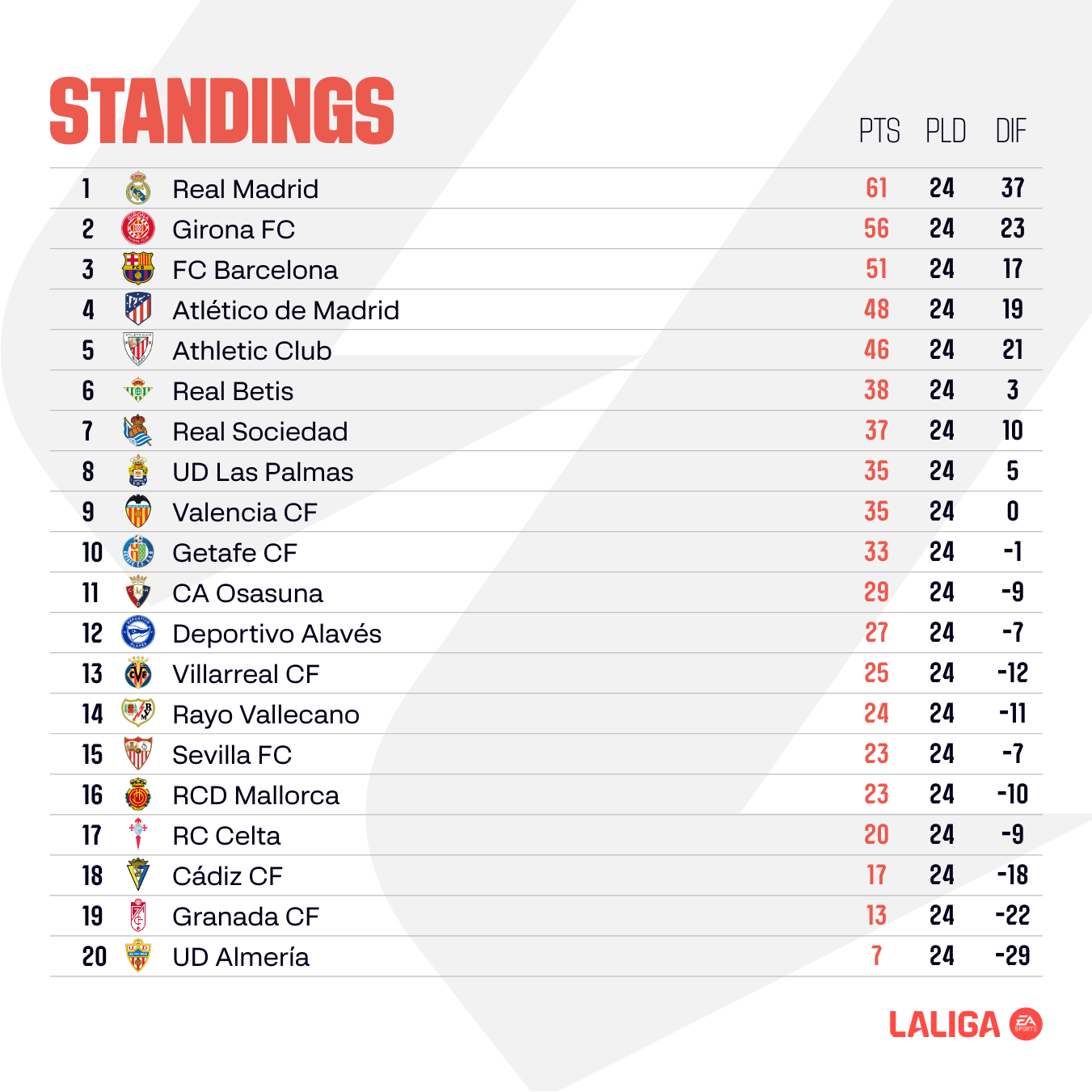We’re now almost two-thirds through the 2023/24 LALIGA EA SPORTS season, making every three points on offer even more valuable. In Matchday 25, there are some really important fixtures, especially in the race to qualify for European football next season.