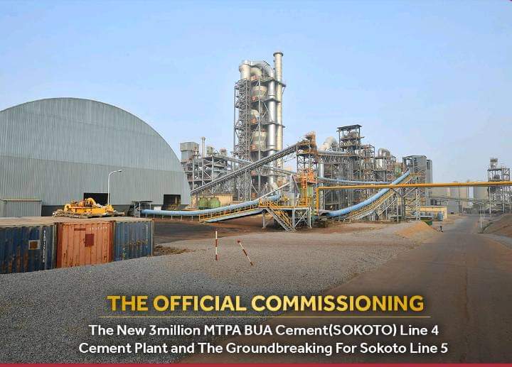 BUA Cement Plc has commissioned its new 3 million metric tonnes Sokoto Line 4 cement plant. The new plant was commissioned by President Muhammadu Buhari.